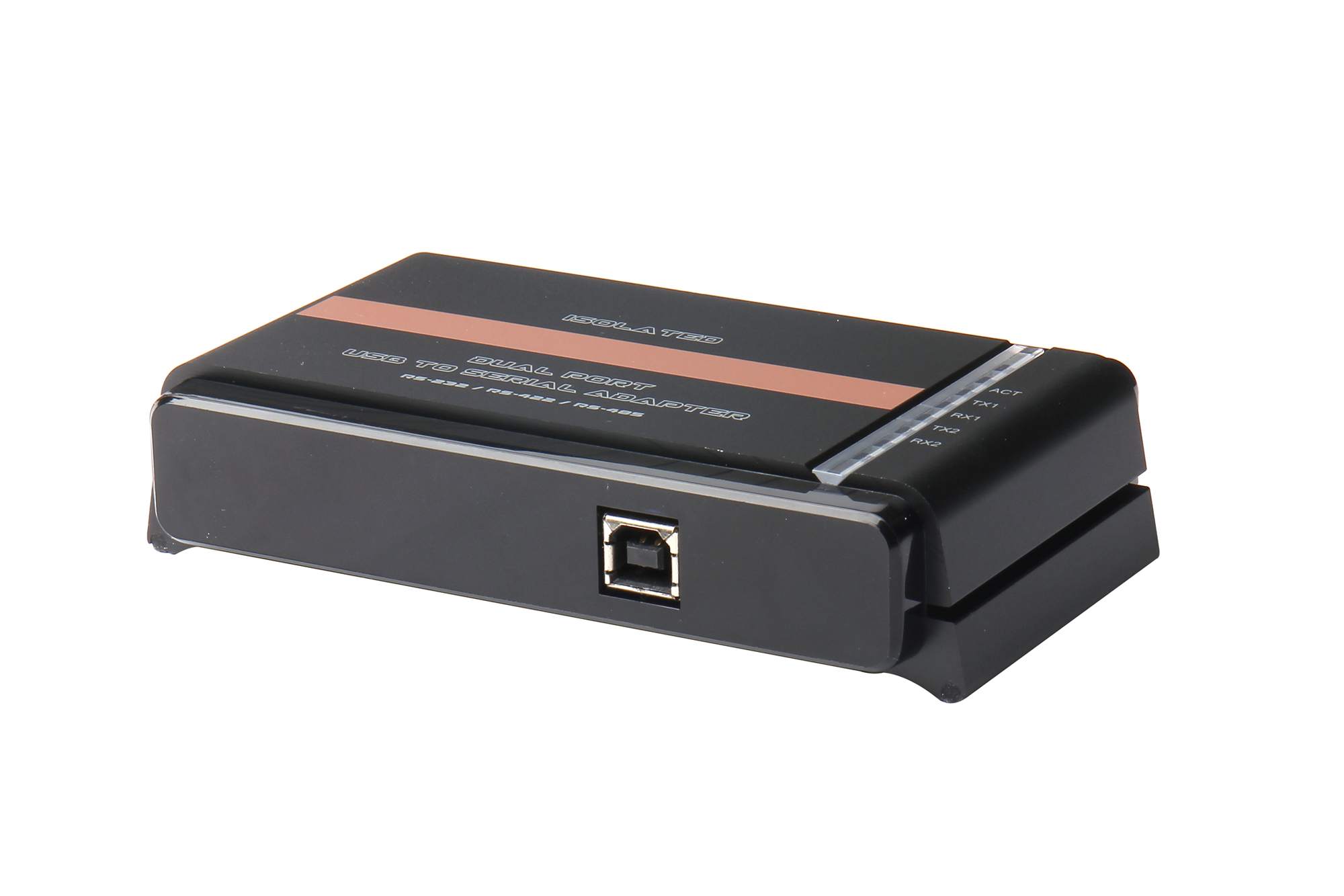 The Isolated USB to 2-Port serial interface adapter features 2.5kV isolation to ensure 2 serial devices by DB-9 port connected require long range or multi-drop capabilities won’t be damaged between the PC and serial applications. All configuration and electrical interface selections are handled through the driver, eliminating the need to open the enclosure to set jumpers or switches. The serial port is software configurable for RS-232, RS-422, an (More...)The Isolated USB to 2-Port serial interface adapter features 2.5kV isolation to ensure 2 serial devices by DB-9 port connected require long range or multi-drop capabilities won’t be damaged between the PC and serial applications. All configuration and electrical interface selections are handled through the driver, eliminating the need to open the enclosure to set jumpers or switches. The serial port is software configurable for RS-232, RS-422, and RS-485 with the electrical interface settings maintained locally, allowing the host computer to be repaired or upgraded without reconfiguring the serial port. Additionally, the isolated adapter can be configured at one computer and deployed to other computers.